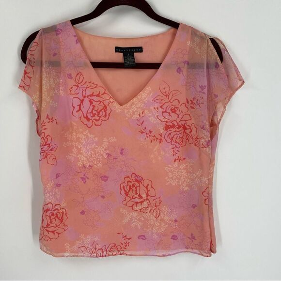 Apostrophe Peach and Red Floral Blouse size 6 Size : 6 Condition : Good preowned condition ABN31