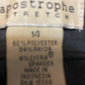 Apostrophe Stretch gray trousers, size 14 (62% Polyester, 34 % Rayon, 4% Spandex)