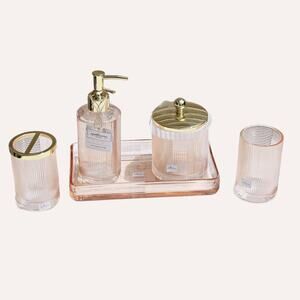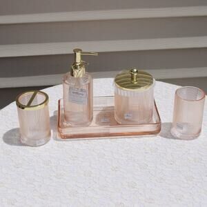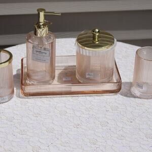Apothecary Home Bathroom 5 Pc Colored Glass Accessory Collection Peachy Gold