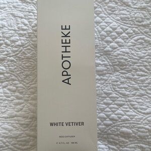 Elegant Apotheke reed diffuser in a subtle white vetiver scent. Comes with a stylish bottle and natural reeds.