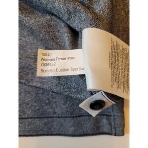 Womens power polo. Can not read size. Shirt is 24 inches across under armpits. Potentially 2XL or 3XL.