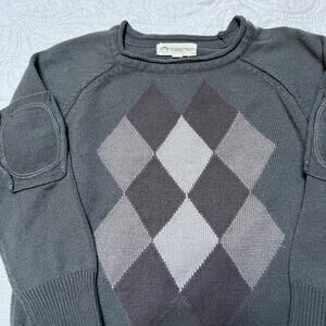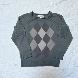 Appaman knit pullover sweater. Gray argyle patterned with elbow patches. Very good condition, light wear. Size 2T.
