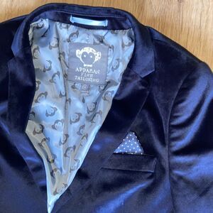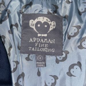 This Appaman Fine Tailoring Blue Blazer is a stylish and sophisticated addition to any young boy's wardrobe. Made from luxurious velvet fabric, this tailored blazer features a classic blue color and sporty theme, perfect for formal occasions like parties or weddings. The size 8 jacket is designed for boys who appreciate a smart and polished look, with a sleek exterior color and attention to detail in the design. Ideal for young gentlemen who want to make a fashionable statement at special events.