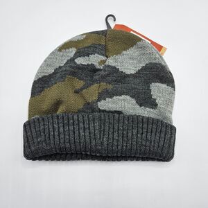 New with tags, this Appaman kids' beanie features a stylish gray and green camouflage knit. This product features a soft fleece lining for extra warmth and a ribbed cuff with the signature Appaman monkey logo patch. Perfect for cool weather and everyday wear.