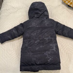 Appaman black camo toddler down filled puffer jacket with hood sherpa lining
