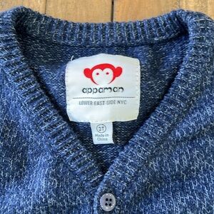 Marled blue with green stripe Button front No holes or stains Fabric tag removed