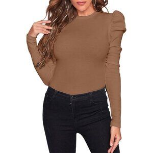 Apparallel Women's Brown Long Sleeve Knit Top With Puff Shoulders Sz L 2457