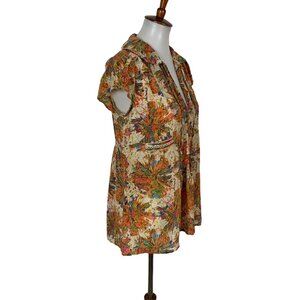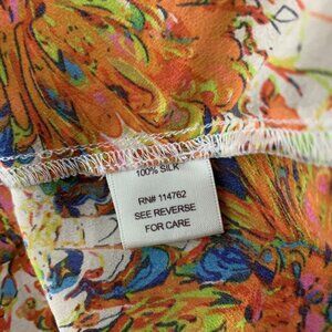 Appareline Silk Bright Floral Top Abstract Print Cap Sleeve Medium