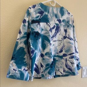 Discover the artistic flair of the Apparenza blazer, featuring a stunning watercolor-like print in shades of blue and white. This modern piece combines the elegance of a blazer with a unique abstract design, making it a standout addition to any wardrobe. Crafted for versatility, it effortlessly transitions from casual to formal settings, ensuring you make a statement wherever you go. 97% cotton and 3% spandex.