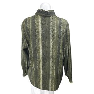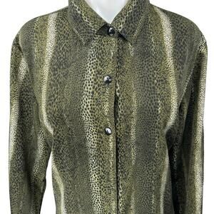 Apparenza Green Reptile Animal Print Long Sleeve Button Down Shirt Blouse Top L