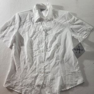 Apparenza Women's Short Sleeve Button Up Blouse in White Size Small