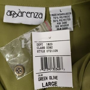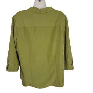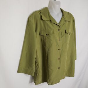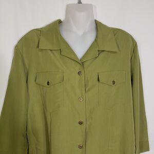 Apparenza Womens Top Large Green Button Front 3/4 Sleeve Pockets Shoulder Pads