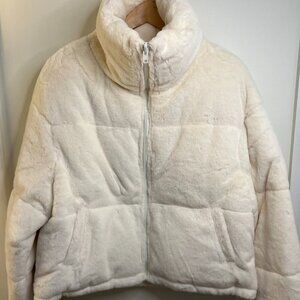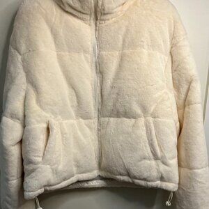 Apparis Billie Zip Front Short Faux Fur Coat in Ivory Size L. NWT