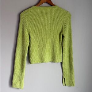 recycled cotton-blend Brittney ribbed knit cropped cardigan from APPARIS featuring ribbed knit, round neck, front button fastening, long sleeves and cropped. POSITIVELY CONSCIOUS