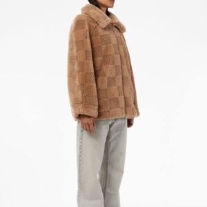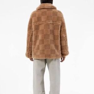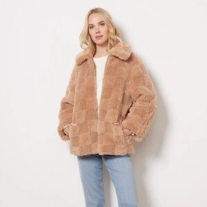 Apparis Lucy Checked Faux Fur Jacket in Size M in Butterscotch NWT