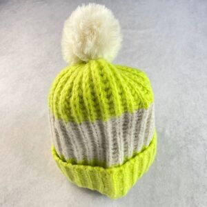 Apparis Oshin Beanie Kiwi Green Stripe Cream Pompom Recycled Chunky Knit NEW!