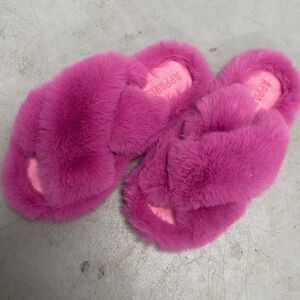 Apparis Pink Plush Faux Fur Slippers - Criss Cross - NWOT - Size 8 💙
