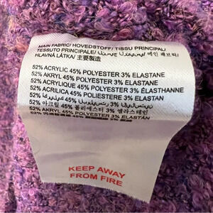 - 52% Acrylic, 45% Polyester, 3% Elastane