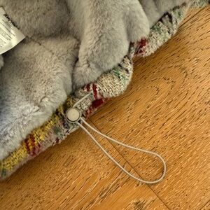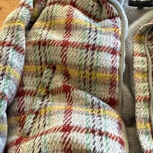 Cozy kids jacket in gray with red and yellow plaid accents. Soft sherpa lining for warmth and comfortable wear. Full zip front and high collar for added protection. Stylish plaid design that layers easily over outfits.