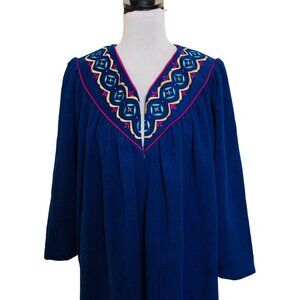 Appel Southwestern Blue Robe Petite Size M Retro Style Embroidered VTG Bathrobe