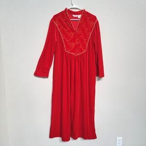 Appel Vintage Robe Womens Medium Red Velour Long Sleeve Embroidered 80s Winter