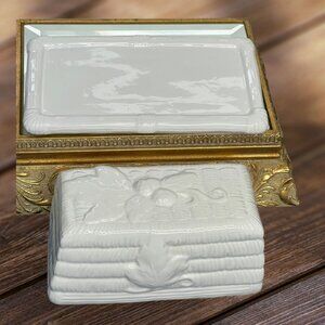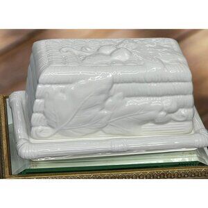 This ceramic butter dish features an elegant design with embossed details, offering both functionality and sophistication.