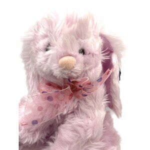 Soft, cuddly, fluffy & adorable plush bunny rabbit with a pink polka dot bow, perfect for snuggling or Easter gift-giving.