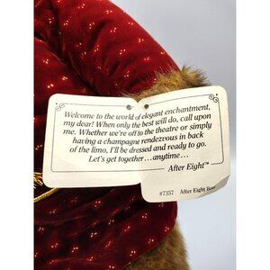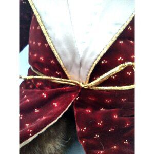 Bring home cozy vintage charm with this adorable 1986 Applause plush teddy bear, dressed in a luxurious red evening robe and matching slippers. Measuring approximately 23 inches tall, this teddy is the perfect blend of nostalgic '80s style and cuddly softness.