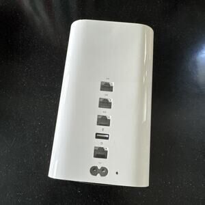 This Apple AirPort Extreme Base Station is a wireless router that is perfect for home networking and connectivity. With its dual-band feature, you can enjoy faster and smoother internet access for all your devices. The router comes in a sleek white color and has three LAN ports for easy connection to other devices.