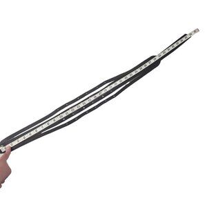 Measures slightly more than 3” wide at front and 1” wide at back. Length measurements in pictures.