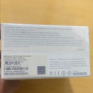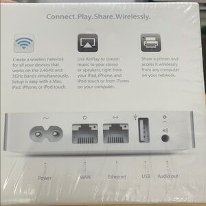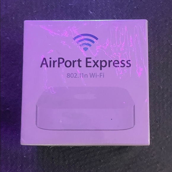Compact Apple AirPort Express for easy Wi‑Fi setup. Stream audio and share printers wirelessly. Sleek white finish with minimalist styling. Simple to configure and integrate into networks.