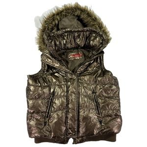 Apple Bottom Jeans Vintage Puffer Vest Faux Fur Hood 1X Gold Studded