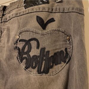 Apple Bottom Jeans with unique back pockets grey wash factory distressed