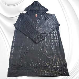 Apple Bottom black opalescent circles deconstructed hooded dress