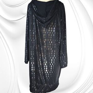 Apple Bottom black opalescent circles deconstructed hooded dress