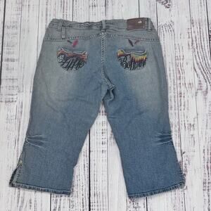 Apple Bottoms Capri Jeans 13/14 Light Wash Embroidered Raw Hem Y2K