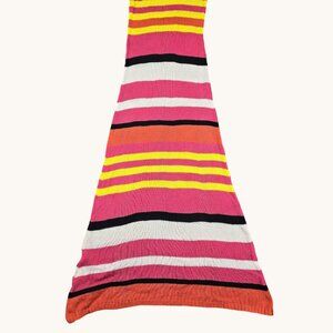 Color: Multicolor stripes (pink, orange, yellow, white, black) with orange trim