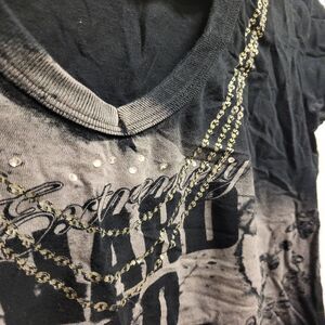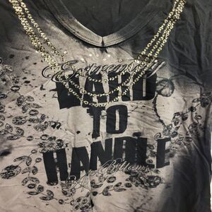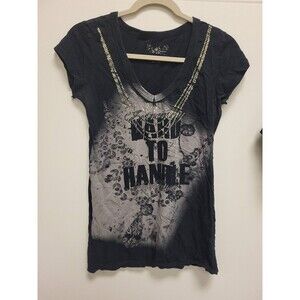 Apple Bottoms Hard to Handle T Shirt Womens L V Neck Graphic Rhinestone Top