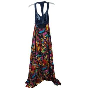 Apple Bottoms Multi Color Maxi Dress Denim Top Fairy Abstract Print Small 2