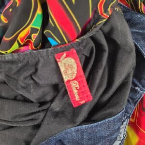 Apple Bottoms Multi Color Maxi Dress Denim Top Fairy Abstract Print Small 2