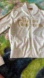 Chic track jacket/ bomber jacket by Apple Bottoms. Features a crisp white base with striking gold details. Ideal for a stylish look. Stain on left arm, as shown in pics