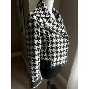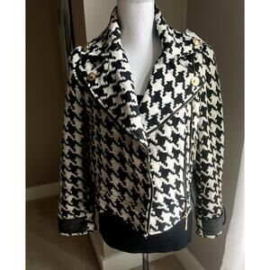 Apple Bottoms black and white herringbone asymmetric moto jacket size small