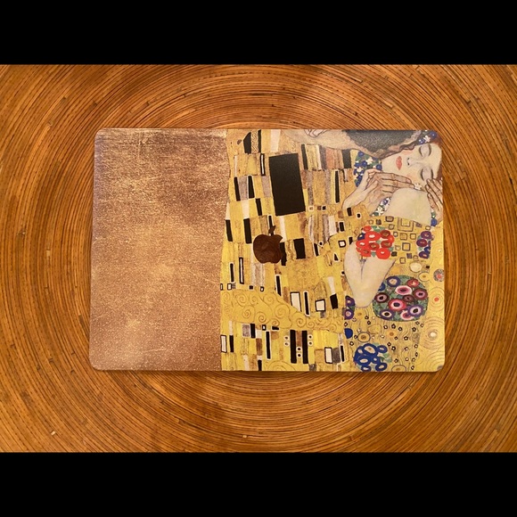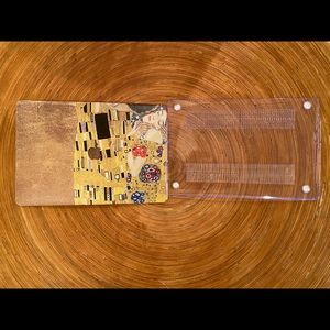 This case has the famous painting, The Kiss by Gustav Klimt, on it. It has never been used. The measurements of this case are: 13.8 x 9.5 x 0.6 inches