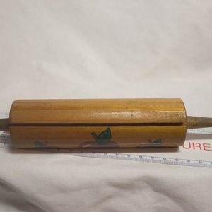 Rolling pin recipe card holder with three apples. This item is wood with a small wood chip out of one side. It is about 9.5 inches long and stands about an inch high. Would be great for your country kitchen. Please look at all images and ask any questions you may have.