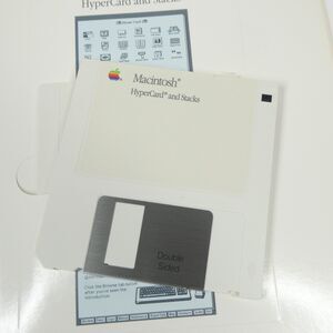 Vintage software lot. Consists of 3 spiral-bound user manuals and 3 floppy disks. The software is Apple HyperCard version 1.2.5, dated 1989. Books and disks are in good cosmetic shape with minor handling wear.