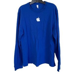 Apple Macintosh Blue Knit Long Sleeve Large LOGO Blue T-Shirt Tshirt T Shirt