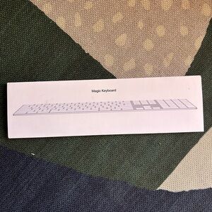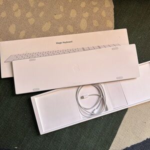 For Sale: Apple Magic Keyboard Board with Numeric Key Pad. Perfect, like new working conditions. Bluetooth connection. Comes with charging cord.