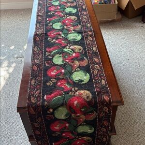 Vibrant table runner featuring a fruit pattern with apples. Perfect for adding a touch of color to your dining area.