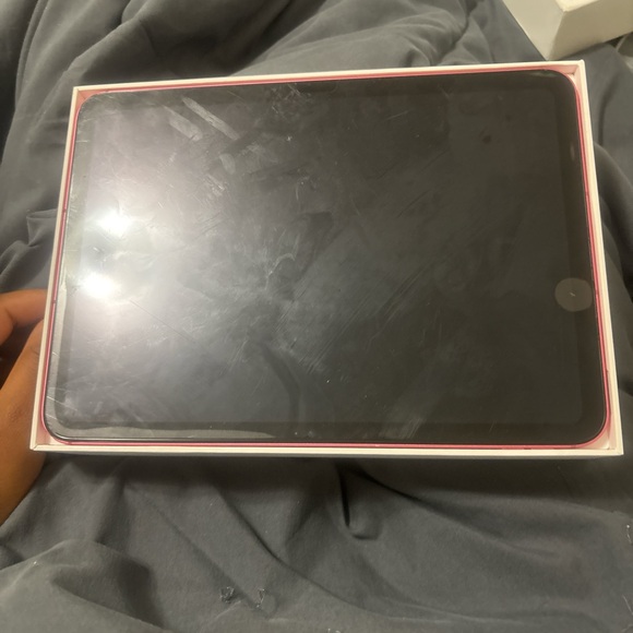 Stylish Apple tablet with a vibrant pink frame. Perfect for entertainment and productivity.