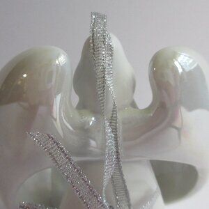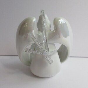 Apple Tree Design Porcelain Angel 3D Nativity Ornament White Gold Trim Christmas